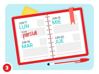 Siempre es bueno tener a la mano una agenda donde puedas poner tus fechas de parciales, entregas o vacaciones. De este modo podrás tener más control sobre tu tiempo, hasta el punto en que puedas incluso, agregar en tu calendario, salidas con amigos, viajes pendientes o proyectos personales.